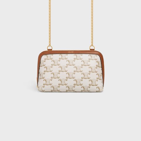 CLUTCH WITH CHAIN IN TRIOMPHE CANVAS AND LAMBSKIN WHITE/TAN