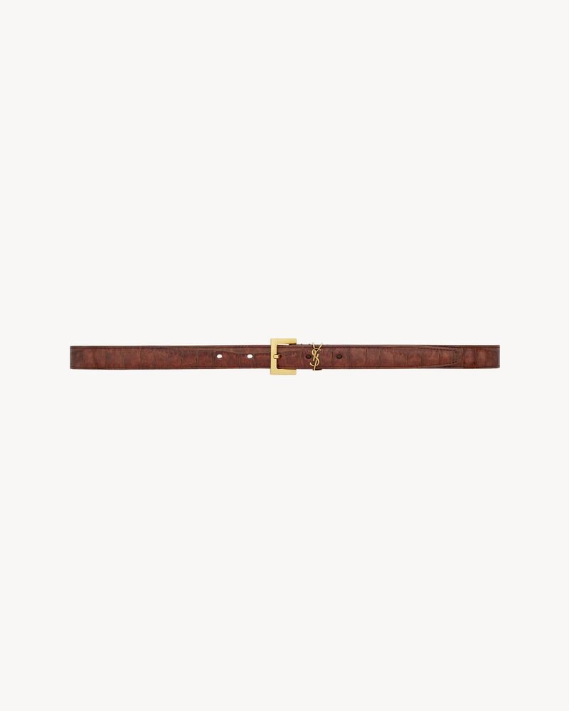 cassandre thin belt in crocodile-embossed leather