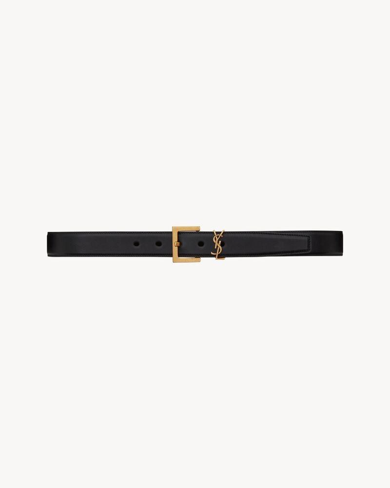 cassandre belt with square buckle in shiny box saint laurent leather