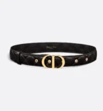 Inspired by the hallmark namesake bag, the 30 Montaigne belt is offered in a new variation that’s timeless and elegant, showcasing House codes. Crafted in black smooth calfskin, it stands out with the originality and quilted effect of its iconic Cannage stitching, attesting to the House’s unique savoir-faire. Embellished with an iconic CD buckle in shiny gold-finish metal, the belt pairs well with jeans, a skirt or dress.