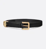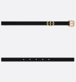 The 30 Montaigne Loop belt is inspired by the hallmark namesake bag. Crafted in black ultrasoft calfskin, it stands out with a shiny gold-finish metal CD pin buckle. Enhanced by the iconic 30 Montaigne CD signature in shiny gold-finish metal on the side, the belt will lend a timeless and refined look to a Bar Jacket, dress or jeans.