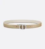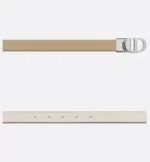 Inspired by the hallmark namesake bag, the 30 Montaigne belt is offered in a reversible variation, thanks to its swivel feature. Crafted in latte smooth calfskin on one side and rope beige on the other, it is embellished with the iconic palladium-finish metal CD buckle. The design also features two removable loops that can be worn in an either tonal or contrasting fashion. The timeless accessory elegantly highlights the waist and will coordinate well with jeans, a skirt or a dress.