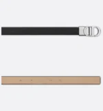 Inspired by the hallmark namesake bag, the 30 Montaigne belt is offered in a reversible variation, thanks to its swivel mechanism. Crafted in black smooth calfskin on one side and biscuit smooth calfskin on the other, it is embellished with the iconic CD buckle in a palladium-finish metal version. The design also features two removable loops that can be worn in a tonal or contrasting fashion. The timeless accessory elegantly highlights the waist and will coordinate well with jeans, a skirt or a dress.