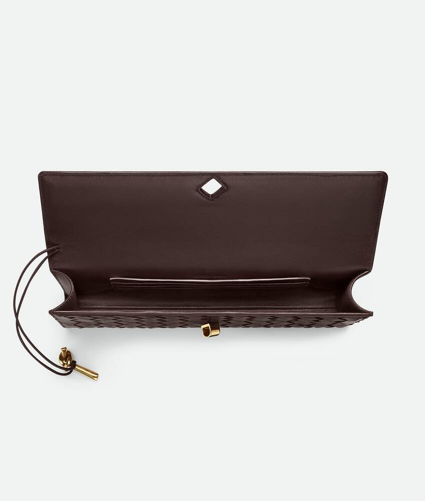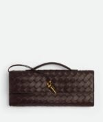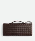 Intrecciato leather top handle clutch with metallic knot closure