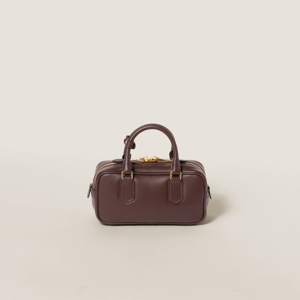 This Arcadie leather bag expresses a notion of fashion as a means of translating a reaction to current reality into material form. The light padding gives the bag a voluminous look and a cosmopolitan style. The lettering logo, which echoes the finishes of the metal hardware, crosses the boundaries between function and decoration and helps to define the distinctive and iconic aesthetic of the top-handle bag.