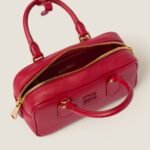 This Arcadie leather bag expresses a notion of fashion as a means of translating a reaction to current reality into material form. The light padding gives the bag a voluminous look and a cosmopolitan style. The lettering logo, which echoes the finishes of the metal hardware, crosses the boundaries between function and decoration and helps to define the distinctive and iconic aesthetic of the top-handle bag.