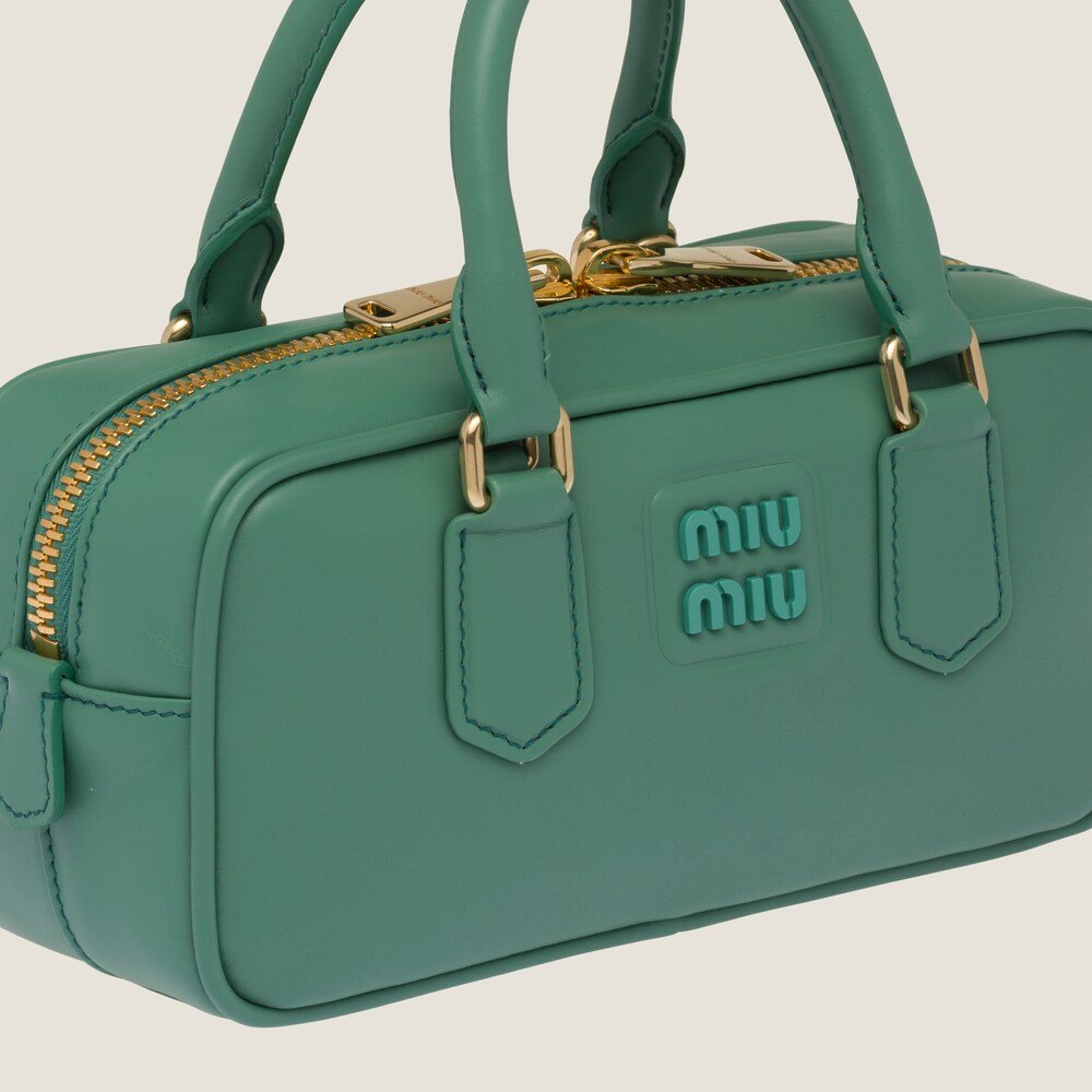 This Arcadie leather bag expresses a notion of fashion as a means of translating a reaction to current reality into material form. The light padding gives the bag a voluminous look and a cosmopolitan style. The lettering logo, which echoes the finishes of the metal hardware, crosses the boundaries between function and decoration and helps to define the distinctive and iconic aesthetic of the top-handle bag.