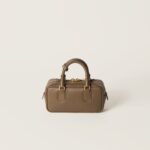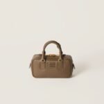 This Arcadie leather bag expresses a notion of fashion as a means of translating a reaction to current reality into material form. The light padding gives the bag a voluminous look and a cosmopolitan style. The lettering logo, which echoes the finishes of the metal hardware, crosses the boundaries between function and decoration and helps to define the distinctive and iconic aesthetic of the top-handle bag.