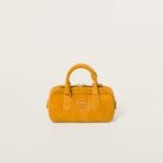 This Arcadie suede bag expresses a concept of fashion as a means for translating a reaction to current reality into a particular shape. The light padding gives a voluminous appearance and cosmopolitan style to the accessory. The lettering logo, in the same color as the hardware, crosses the boundaries between function and decoration and helps define the distinctive and iconic aesthetic of the top-handle bag.