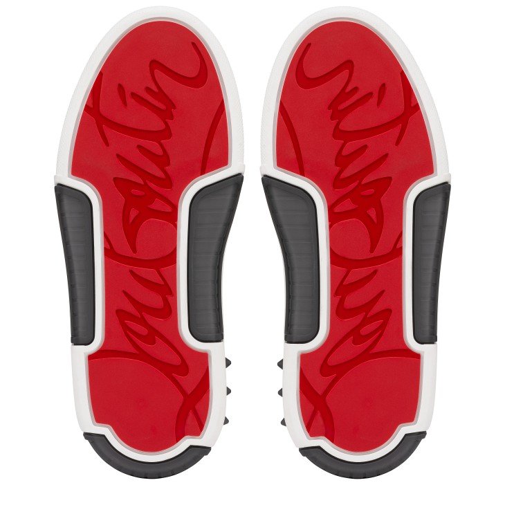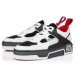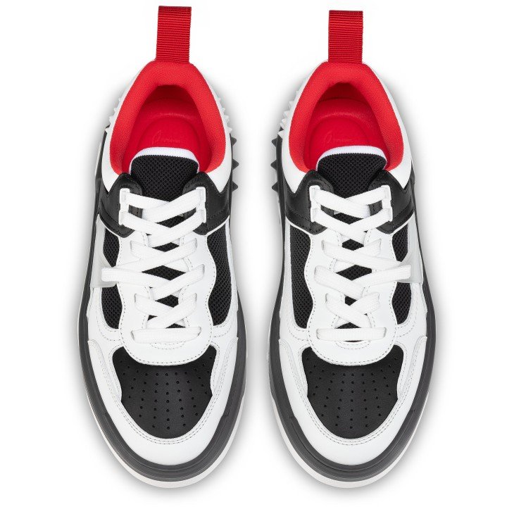Showcasing an array of Maison Christian Louboutin signature details, the Astroloubi for women is inspired by the basketball sneakers of the 90s. This sophisticated style blends white calf leather with black nappa leather. A lightweight, sporty design, this model is finished with a Loubi red heel tab. It features spikes at the back and a CL varsity monogram on the side.