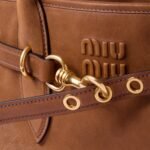 The Aventure top-handle bag, recovered from the Miu Miu archives, has been reinterpreted in terms of a lighter structure and attitude, creating a classic style with timeless charm. The embossed lettering logo completes the design with an iconic note.