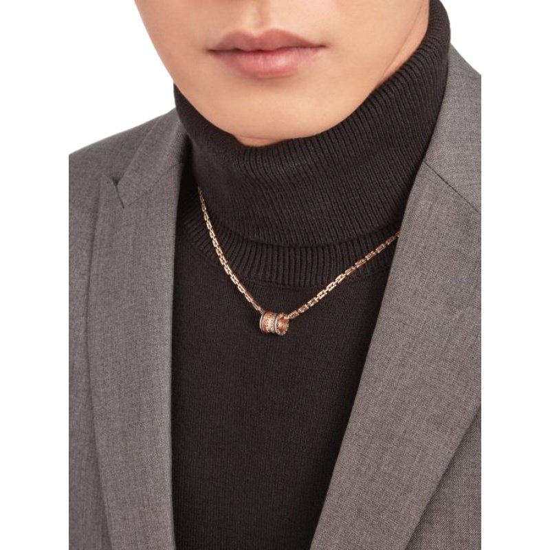 B.zero1 Rock pendant necklace, 18K rose gold, inlaid with black ceramic.
