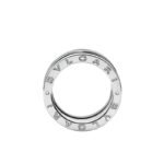 Inspired by the world-famous amphitheater, the Colosseum, the B.zero1 ring is a true expression of Bvlgari??s creative vision, challenging the very essence of jewellery design. Its unique, pure spiral shape symbolises the harmony of past, present and future ?C reflected in the magnificence of the Eternal City ?C and the pioneering spirit of the collection. B.zero1 four-band ring in 18K white gold.