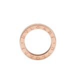 Inspired by the world-famous amphitheater, the Colosseum, the B.zero1 ring is a true expression of Bvlgari??s creative vision, challenging the very essence of jewellery design. Its unique, pure spiral shape symbolises the harmony of past, present and future ?C reflected in the magnificence of the Eternal City ?C and the pioneering spirit of the collection. B.zero1 single band ring in 18K rose gold.