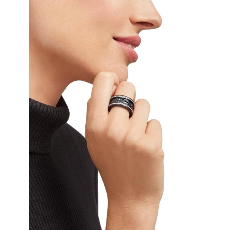 B.zero1 Rock series four-band ring, made of black ceramic, decorated with pave diamonds.