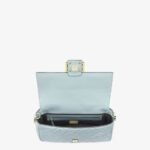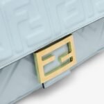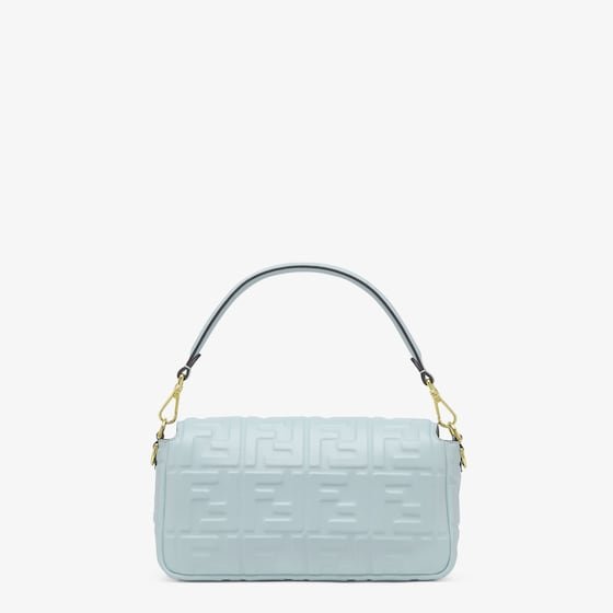 Iconic medium Baguette bag made of soft nappa leather in light blue with a 3D-texture, embossed FF motif. Decorated with an FF clasp.