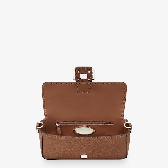 Made of brown Cuoio Romano leather, calfskin with a characteristic natural grain, produced with a metal-free tanning process.