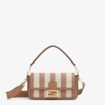 Made of beige jacquard fabric with a Pequin striped motif. Trimmed in beige calfskin and embellished with an FF clasp.