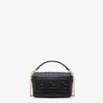 Small iconic Baguette bag made of soft, black nappa leather with a 3D-effect embossed iconic FF motif and embellished with an FF clasp.