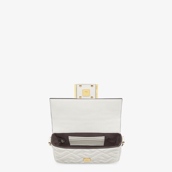 Small iconic Baguette bag made of soft, white nappa leather with a 3D-effect embossed iconic FF motif and embellished with an FF clasp.