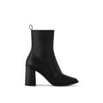 The Berlin ankle boot is crafted from supple calf leather for a stretchy, second-skin effect. The upper is complemented by an equally sleek, leather-covered heel in the shape of a half-Monogram Flower, which is embossed with the Louis Vuitton signature. This model was a highlight of Nicolas Ghesqui??re’s 10th anniversary show for the House.