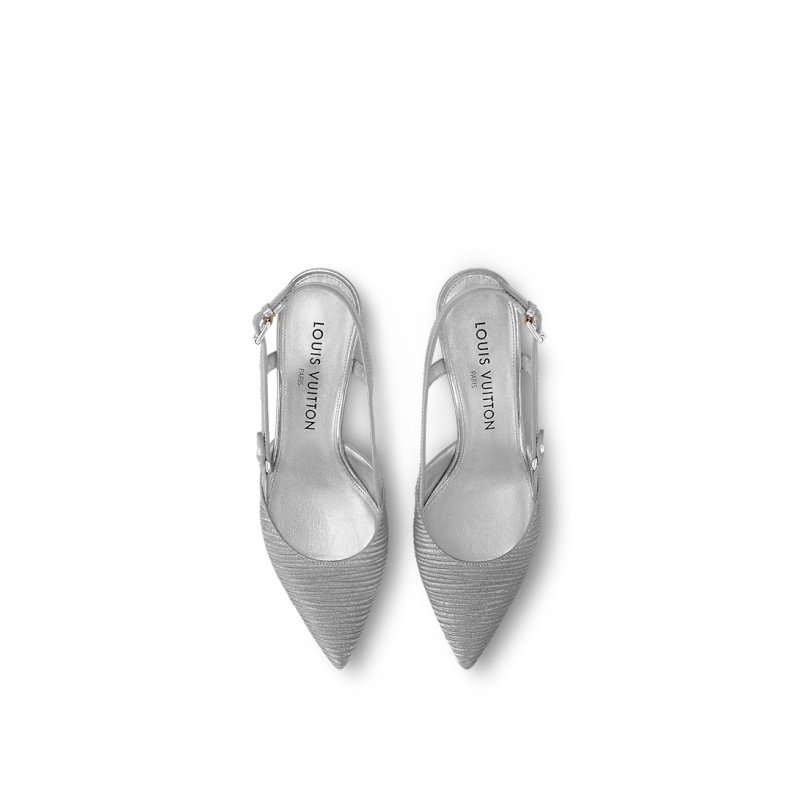 The Blossom slingback pump is crafted from shimmering Epi satin for an elegant evening look. The upper is complemented by a metallic leather back strap embossed with the Louis Vuitton signature, which fastens with a delicate buckle. A metallic heel in the shape of a round Monogram Flower completes this design.