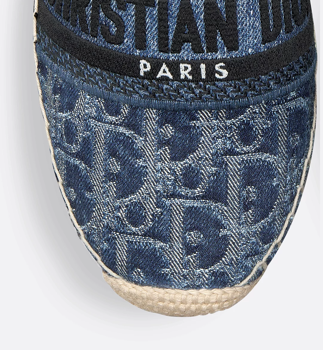 The Dior Granville espadrille highlights the hallmark blue Dior Oblique motif. Crafted in embroidered cotton denim, the style revisits the House’s iconic motif with the modern appeal of an irregular stonewashed effect. The upper is adorned with iconic House details like the Christian Dior Paris signature. The shoe has a traditionally hand-made rope sole and may be coordinated with other Denim Dior Oblique creations from the collection.