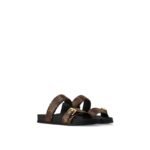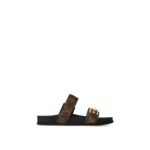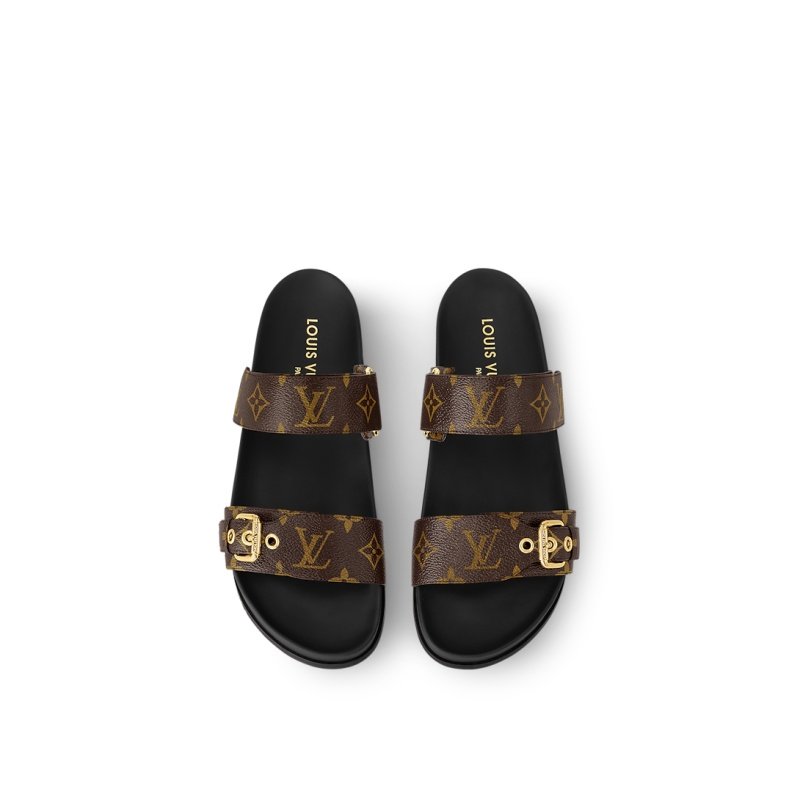 The Bom Dia flat comfort mule combines fashion and function in Louis Vuitton’s signature Monogram canvas. This model is notable for its two adjustable straps: one with velcro, the other with an engraved, gold-tone buckle. An anatomic insole and a slip-resistant rubber outsole complete this effortless, on-trend style.