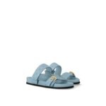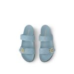 This elevated interpretation of the Bom Dia flat comfort mule comes in Mahina calf leather, distinguished by its perforated Monogram pattern, which coordinates with the leather goods collection. This model combines luxury and ease of wear, thanks to its comfortable anatomic footbed and practical velcro strap. An engraved, gold-tone buckle finishes this design.