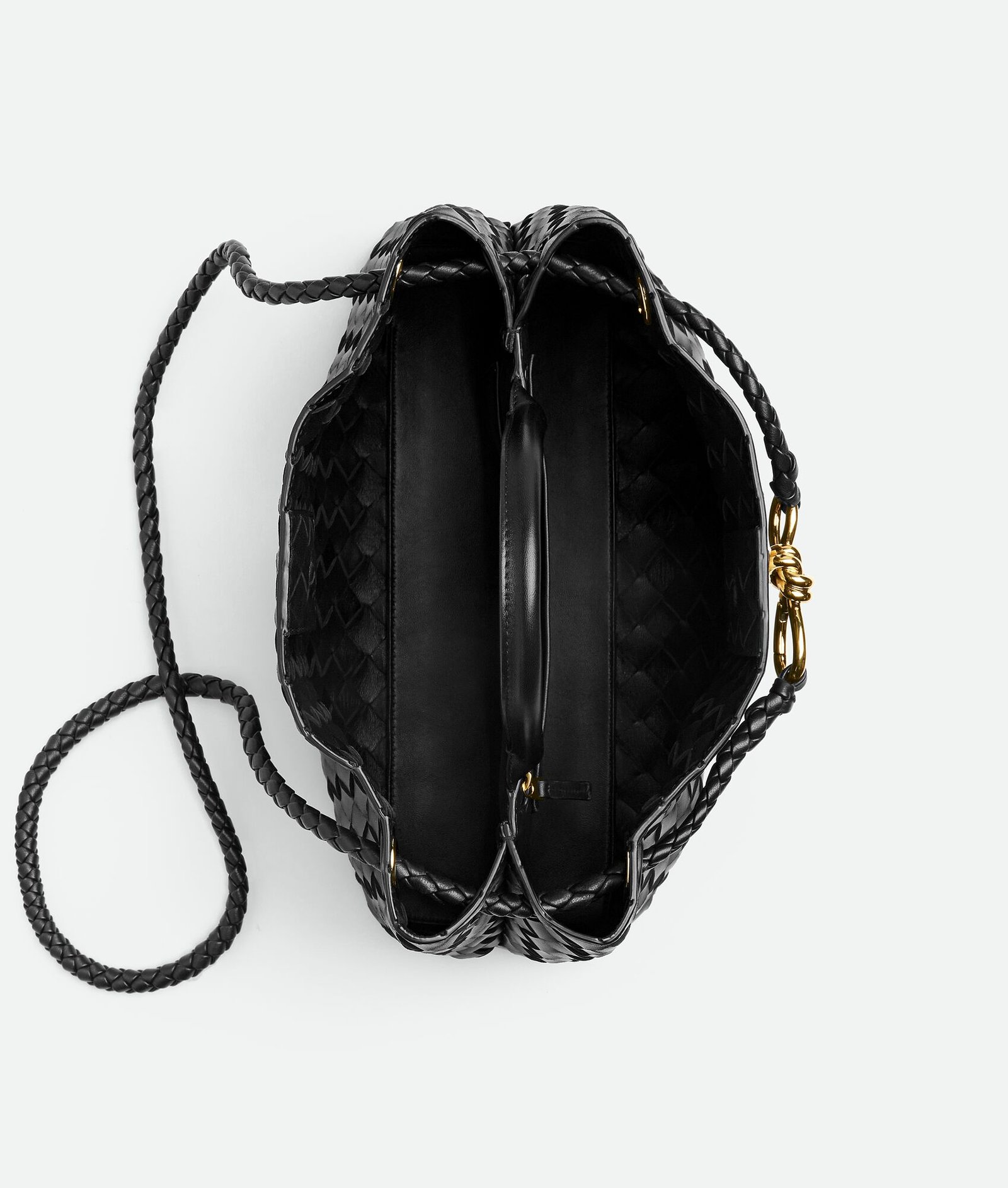 East-West Intrecciato leather top handle bag with sliding cross-body strap