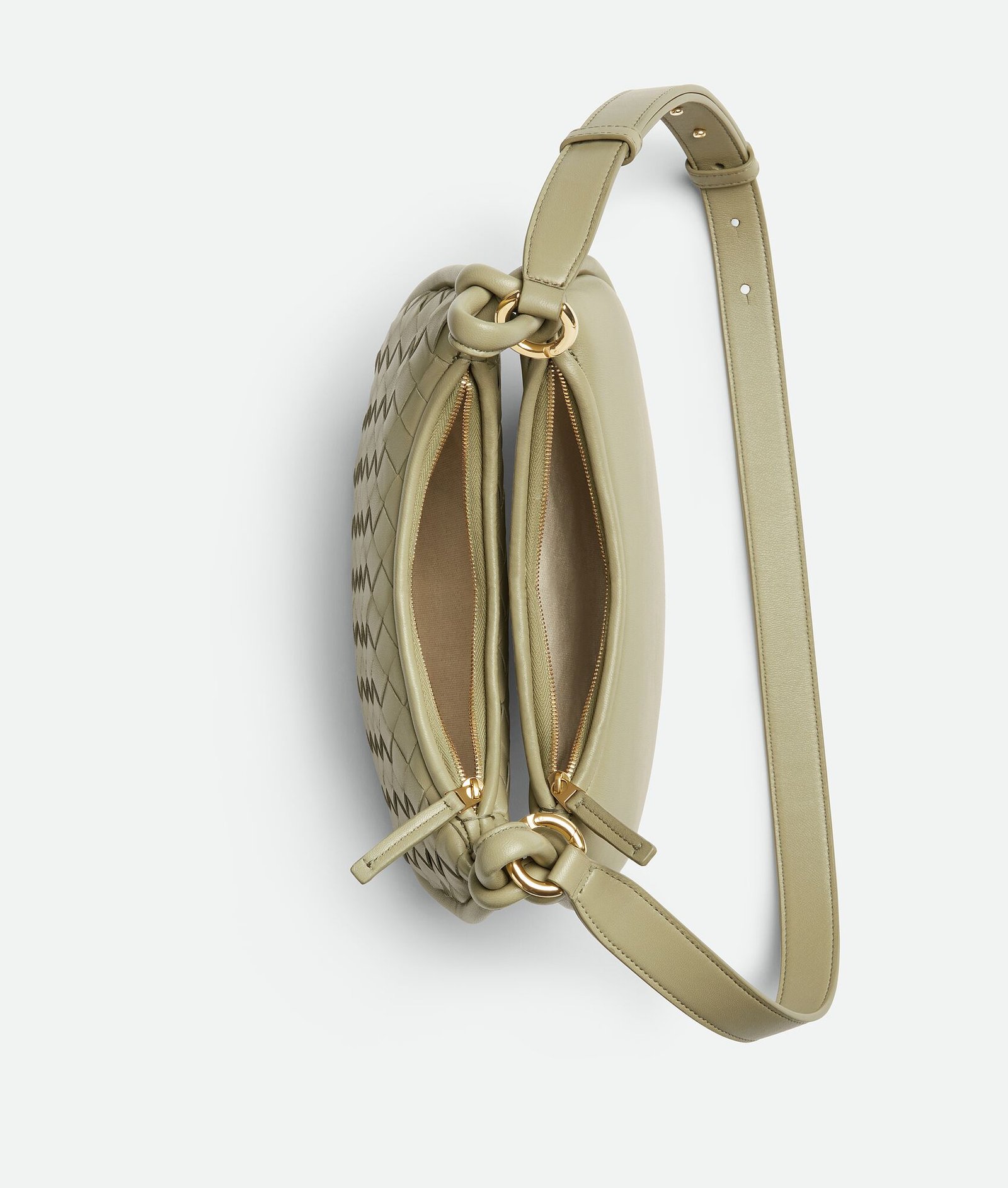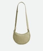 Small Intrecciato and smooth leather half-moon cross-body bag with adjustable strap