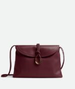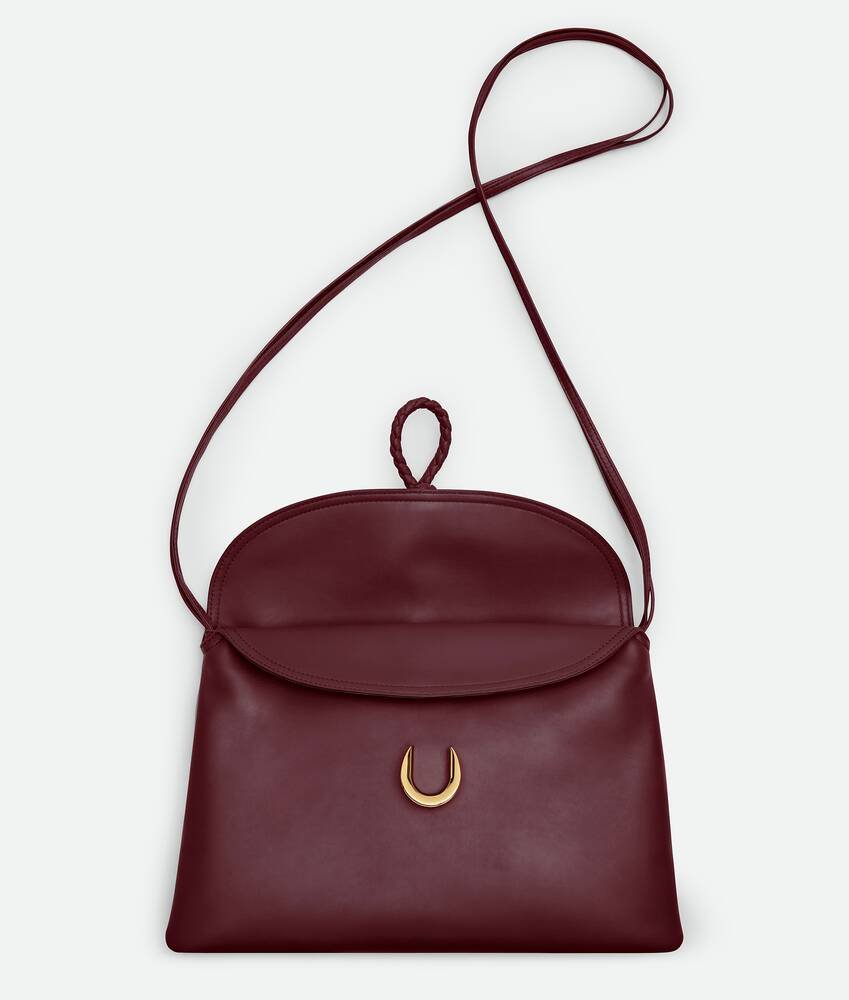 Medium cross-body bag in smooth calfskin leather with double flap and fastening system consisting of metal elements and coaxial cord
