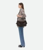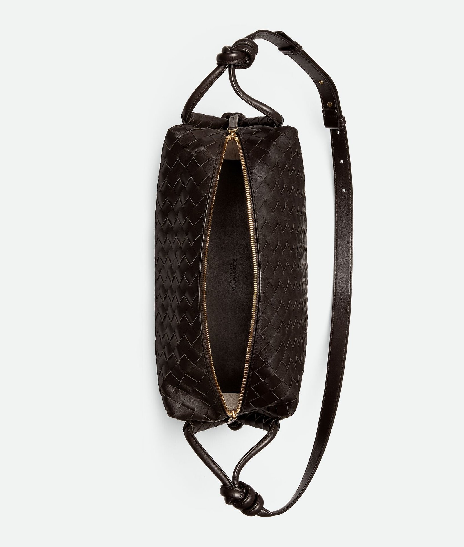Medium Intrecciato leather weekender with smooth leather strap adorned with four handmade leather knots