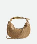 Small Intrecciato leather bag with metallic top handle enriched by a shoulder braided leather chain