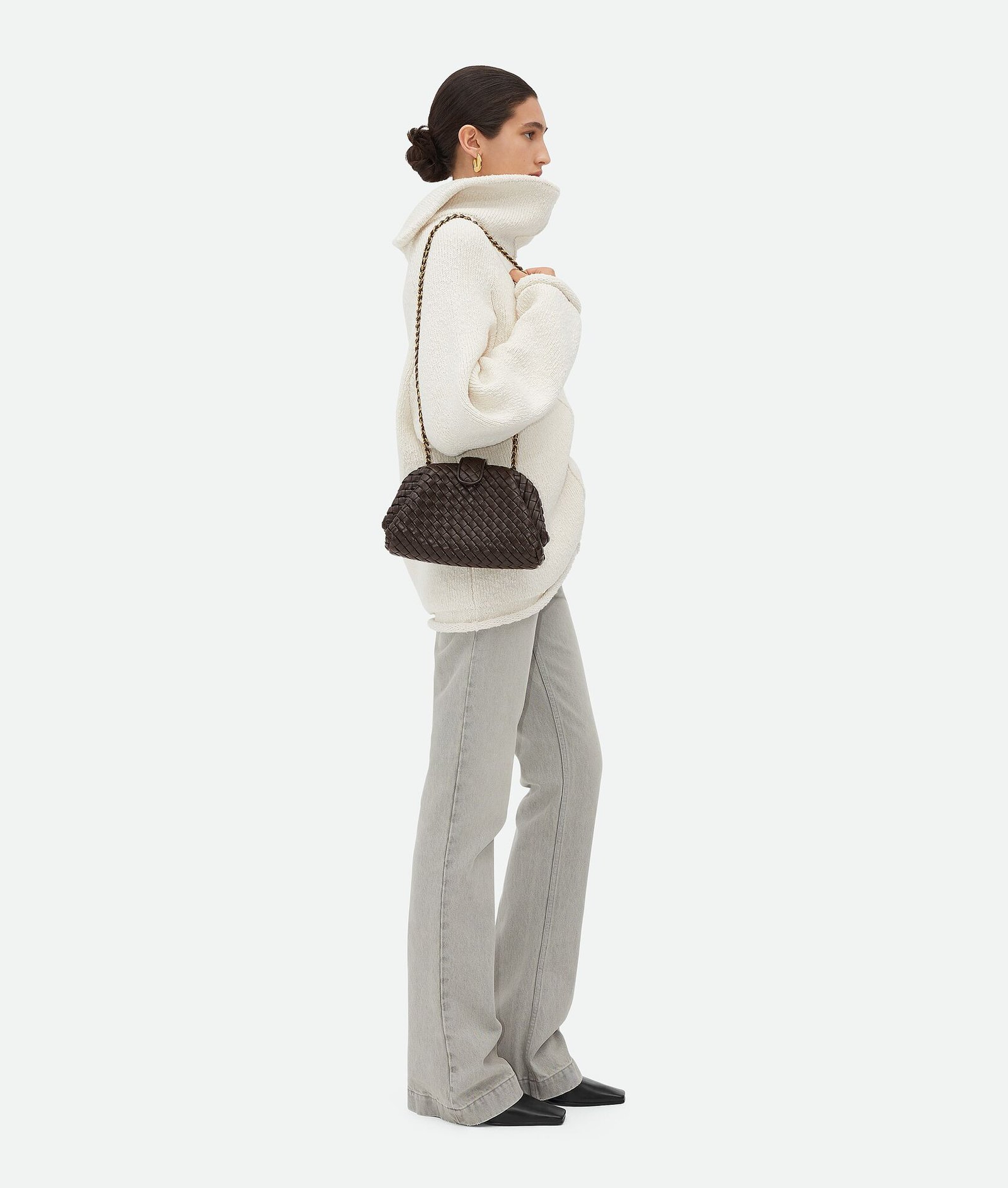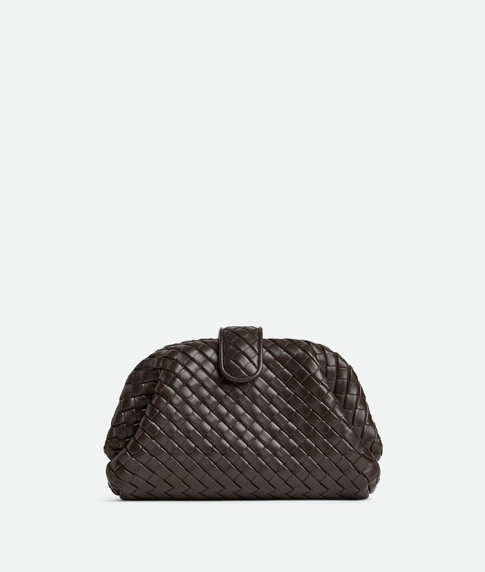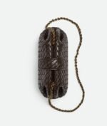 Padded Intrecciato leather mini clutch with leather braided cross-body metal chain