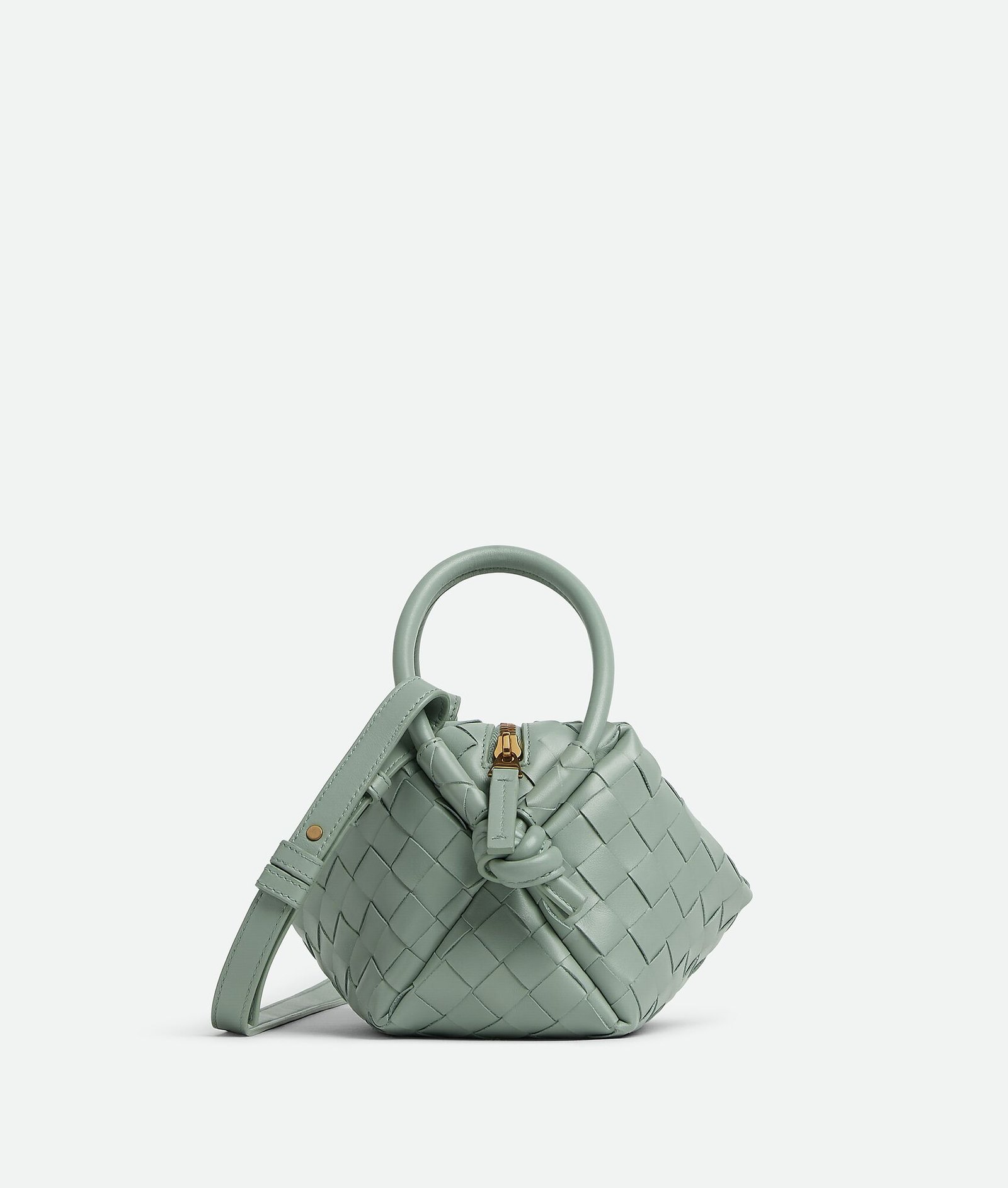 Small Intrecciato leather cross-body bag with double handles and detachable strap