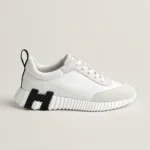 Showing a clean pair of heels, the Bouncing sneaker ventures into urban effervescence. So light that it no longer appears to touch the ground and full of untamed energy, it turns every moment into a high-speed adventure. Thinking big, it features a signature ‘H en biais’ motif in a bold, oversized format.