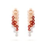 Bouton d’or earrings, 18K rose gold, white mother-of-pearl, carnelian, round diamonds, diamond quality DEF, IF to VVS