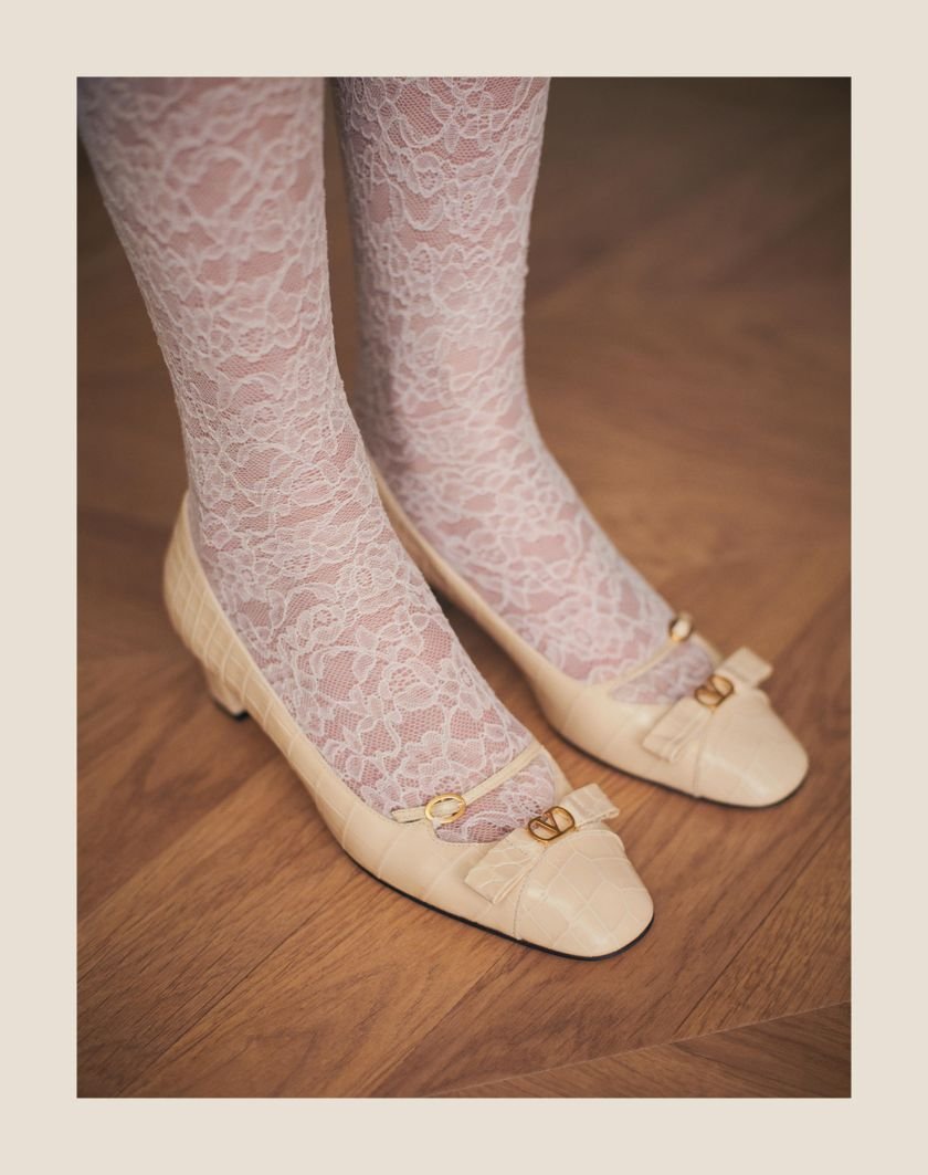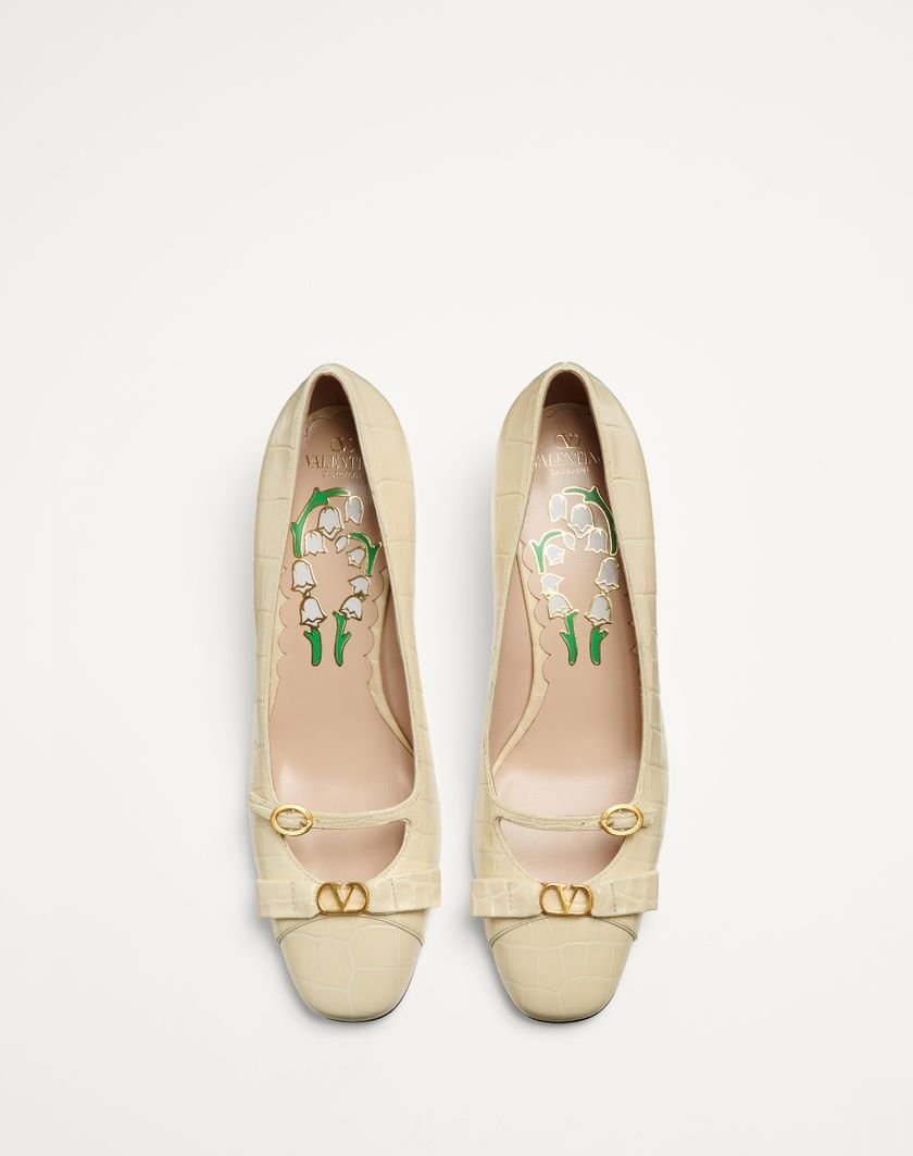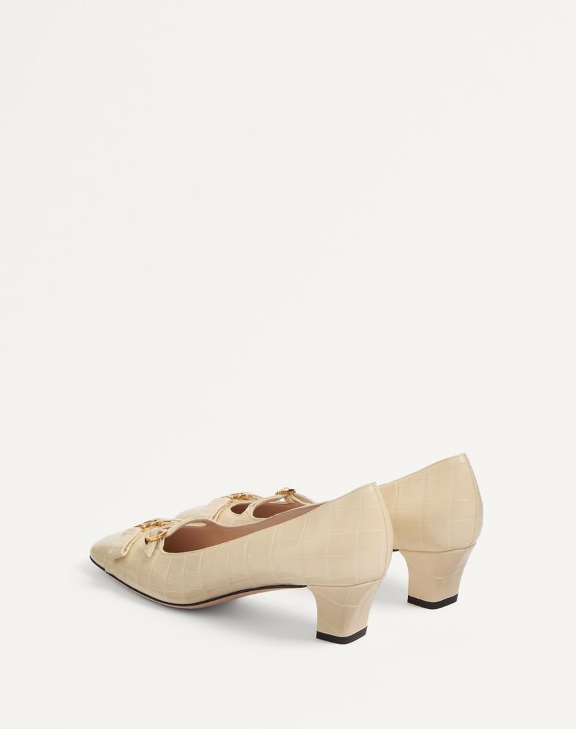 Valentino Garavani Bowow pump with straps in crocodile-effect printed calfskin