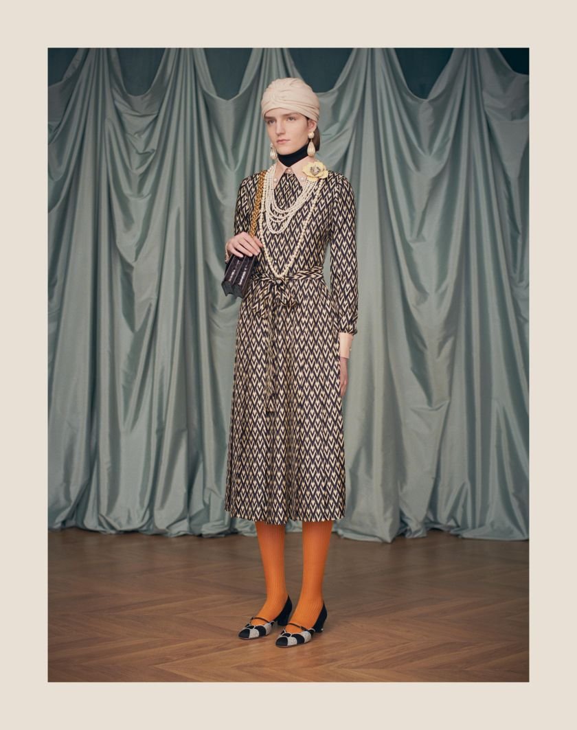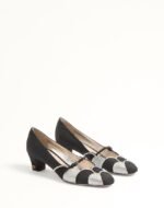 Valentino Garavani Bowow pump with strap in moir?? fabric with crystal appliqu??s and scallop motif