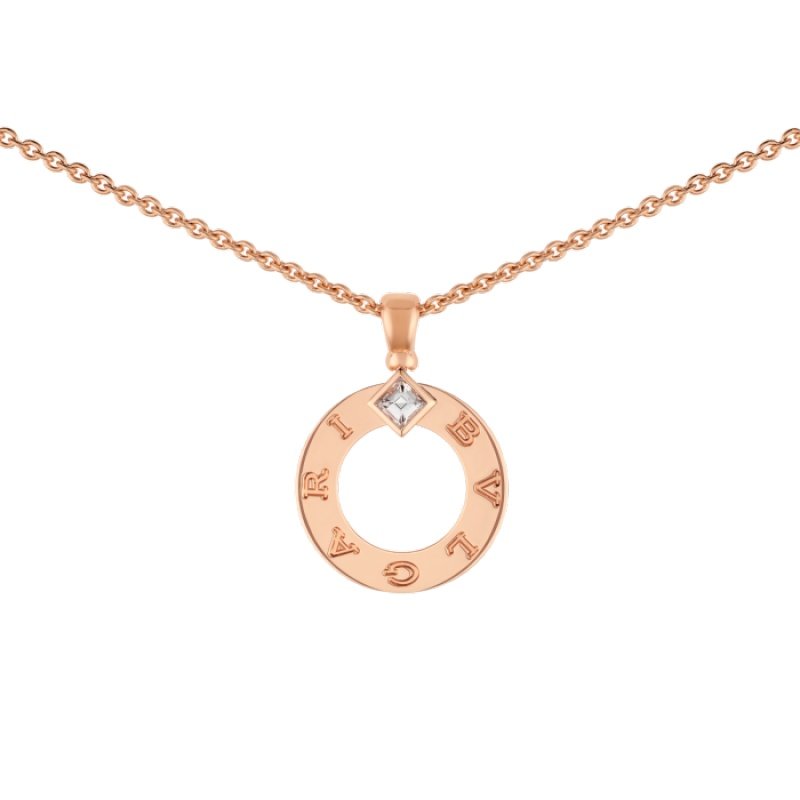 Bvlgari Bvlgari chain and pendant in 18K rose gold, set with diamonds.