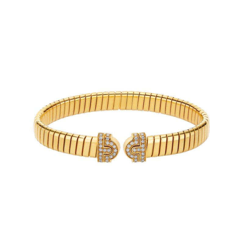 Bvlgari??s Tubogas collection is a fusion of the past and the present, elevating the brand??s beloved jewelry craftsmanship since the 1940s into an iconic collection that highlights the brand??s daring experimental spirit and its outstanding ability to bring precious metals to life. Bvlgari??s Tubogas 18K yellow gold bracelet, decorated with diamond-set Parentesi motifs, is full of unique aesthetic characteristics. It is inspired by the eternal city, while aggressively combining industrial design with exquisite craftsmanship, combining Roman tradition with modern style.