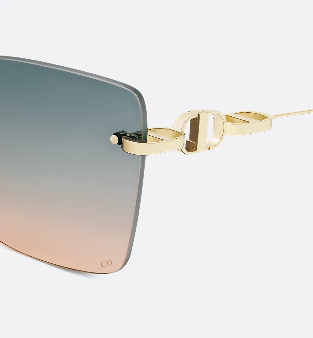The CD Chain M1U sunglasses are a contemporary style, characterized by their frameless square mask shape. Featuring a functional CD hinge in gold-finish metal, the CD chain temples are inspired by the 30 Montaigne jewelry collection. Completed by a single gradient turquoise-to-amber mask lens, the glamorous creation will elevate any look with a modern touch.