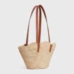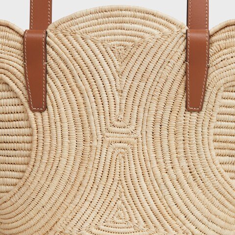 CELINE CLASSIC PANIER SMALL BRAIDED TRIOMPHE IN RAFFIA AND CALFSKIN