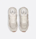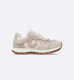 The C’est Dior sneaker is a bold, modern creation. The pairing of ecru suede calfskin and mesh is enhanced by the letters C and D on each side of the upper, while fringed details add a touch of elegance. The ultralightweight, two-tone Dior sole accentuates the sportswear appeal while offering maximum comfort. The sneaker will add a modern touch to all laid-back looks.