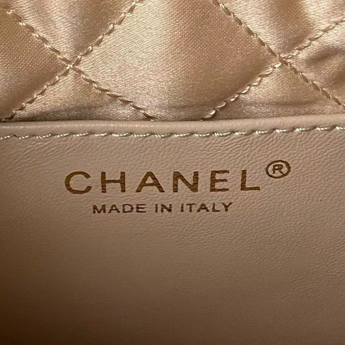 Chanel 22 AS3980 Mini Tote Shiny Calfskin & Gold-Tone Metal White
