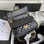 Chanel 23A Classic Medium 2.55 Flap Bag Black Distressed Calfskin Gold Hardware