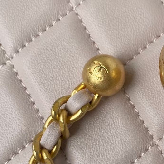 Chanel 23C AS1786 Mini Square Pearl Embossed Flap Bag Antique Gold Hardware Light Pink