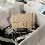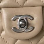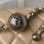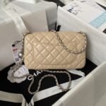 Chanel 23K AS1787 Mini Pearl Embossed Rectangular Flap Bag Lambskin Brushed Silver Metal Hardware Apricot