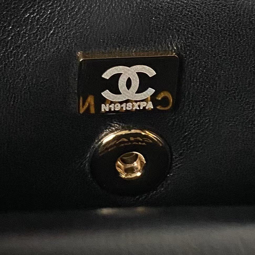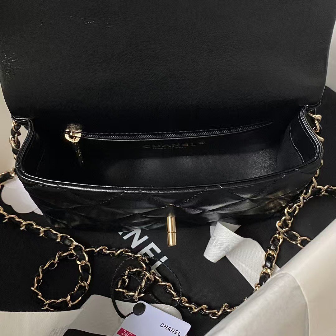 Chanel 24C AS4543 Mini Flap Bag Chain Bag Top Handle Black Lambskin